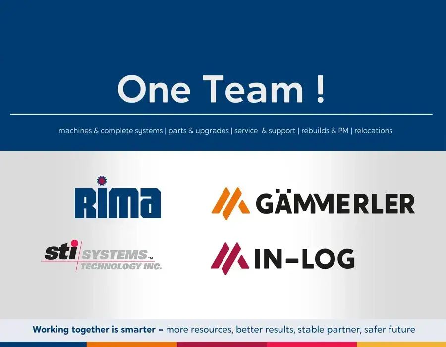 Whatever the brand - RIMA, GÄMMERLER, IN-LOG, STI or even Rota-Schneider - talk to IN-LOG | GÄMMERLER and RIMA Atlanta for all your needs, whether it be parts, service, upgrades, rebuilds or new projects. In Europe IN-LOG | GÄMMERLER becomes solution partner for the RIMA product line, together with selected partners of RIMA Atlanta.